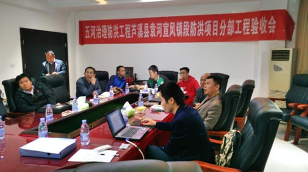 2016年10月31日,我公司承建的五河治理防洪工程蘆溪縣袁河宣風(fēng)鎮(zhèn)段防洪項(xiàng)目在蘆溪縣水務(wù)局會(huì)議室主持召開了分部工程驗(yàn)收會(huì)議,分部工程驗(yàn)收工作組由江西省五河治理防洪工程項(xiàng)目部、蘆溪縣五河治理防洪工程項(xiàng)目部、江西省水利規(guī)劃設(shè)計(jì)院、江西省建洪工程監(jiān)理咨詢有限公司以及我公司等相關(guān)單位的代表組成。公司工程部郭洪有出席了此次驗(yàn)收會(huì)議。